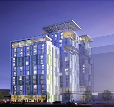 454-unit affordable and permanent supportive housing project with five 8-story buildings, a total of 247,812 sf of floor area and 36,580 sf of open space